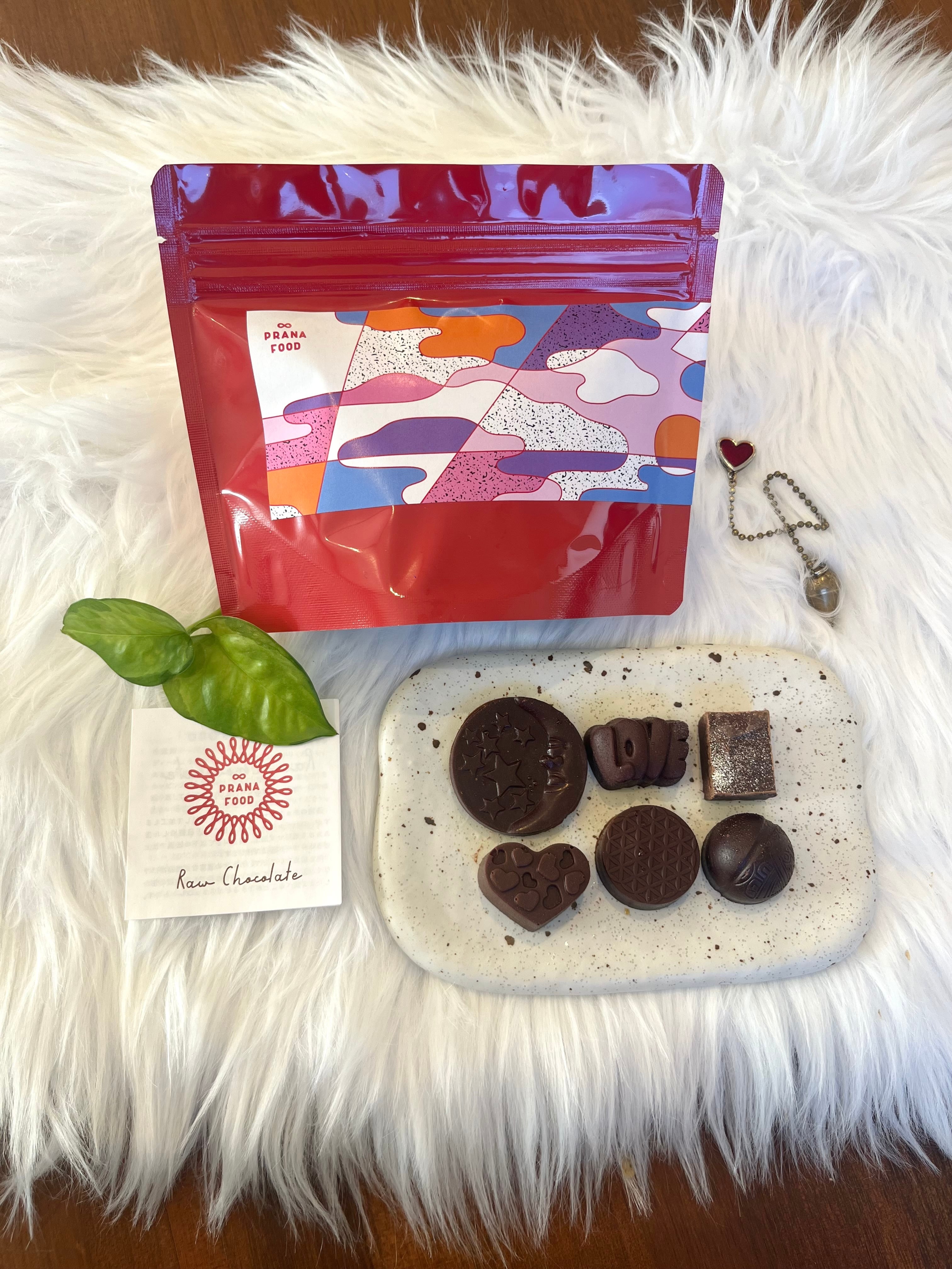 PRANA FOODのローチョコレートは、良質なローカカオにスーパーフードやエッセンスをフレイバーごとに調合した、美容と健康・癒しと目醒めをサポートするエネルギーフードです。